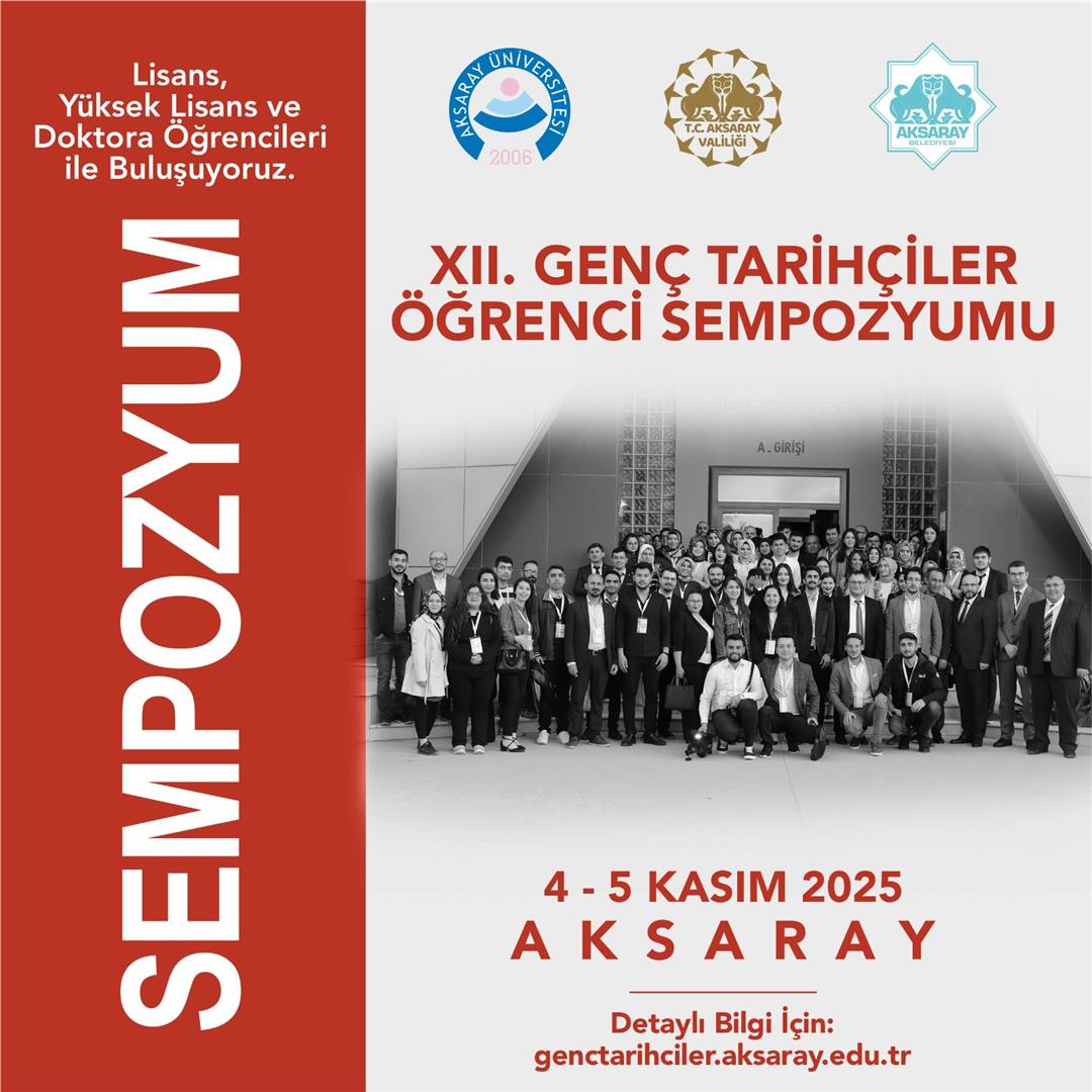Aksaray University, Faculty of Science and Letters, Department of History will organize the XII. Young Historians Student Symposium on November 4-5, 2025. The symposium is planned to be held online (via Zoom).
