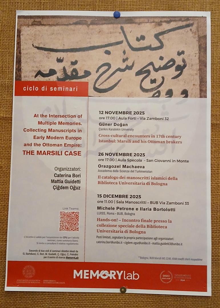 Bölümümüz Öğretim Üyesi Doç. Dr. Güner Doğan Bologna Üniversitesinin davetlisi olarak "Cross-Cultural Encounters in 17th Century Istanbul: Marsili and his Ottoman Brokers" başlıklı bir seminer vermiştir.
